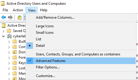 Pour afficher les SPN associés à des comptes utilisateurs il faut afficher les fonctionnalités avancées.