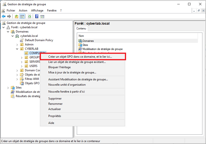 Pour désactiver le protocole LLMNR sur un domaine, nous allons utiliser une stratégie de groupe (GPO). Pour cela rendez-vous sur l'Editeur de stratégie de groupe et créez une nouvelle GPO pour l'ensemble des ordinateurs de l'environnement.