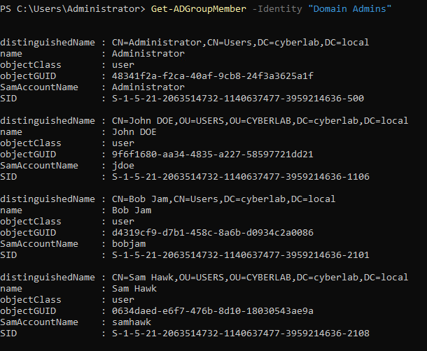 SID : Security Identifier (Identifiant de sécurité) - C'est un identifiant unique attribué à chaque compte utilisateur, groupe et objet de sécurité dans Active Directory. Il est utilisé pour contrôler l'accès aux ressources.