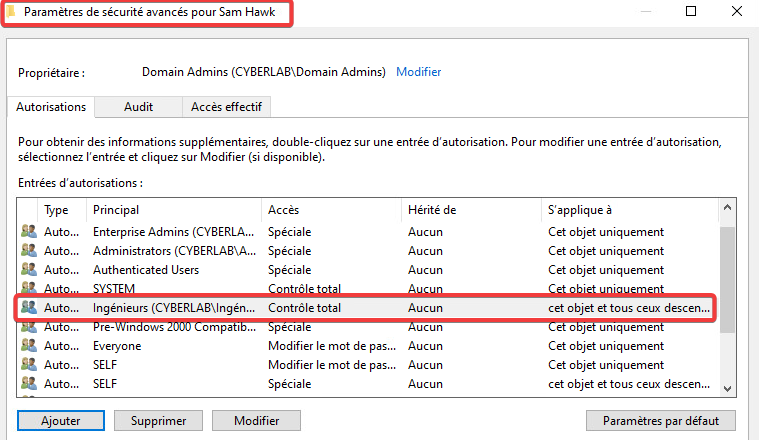 | Accès aux objets | Auditer le partage de fichiers détaillé | Echec |