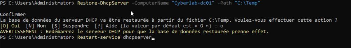 Restore-DhcpServer -ComputerName "Cyberlab-dc01" -Path "C:\Temp"