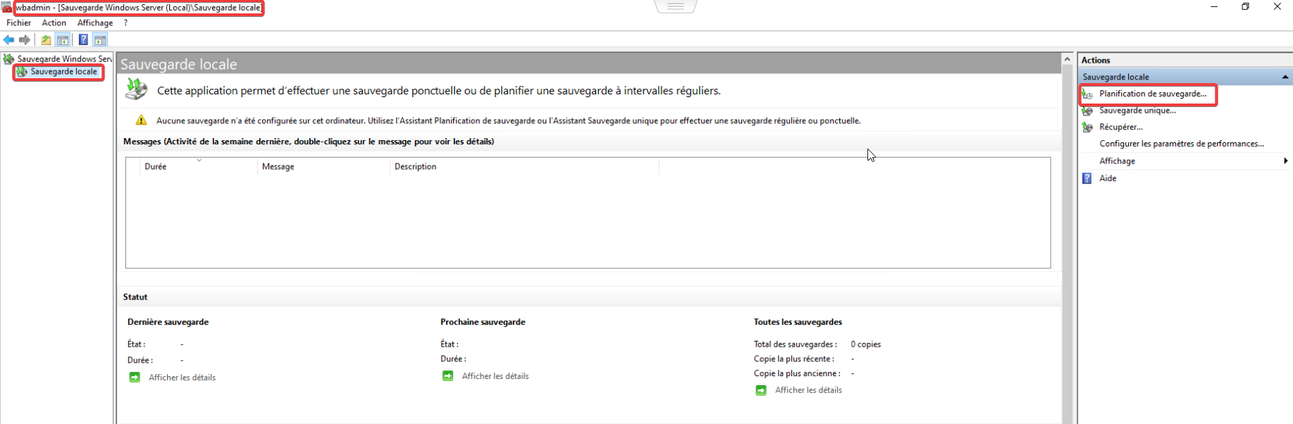 Ouvrir Sauvegarde Windows Server (Windows Server Backup);