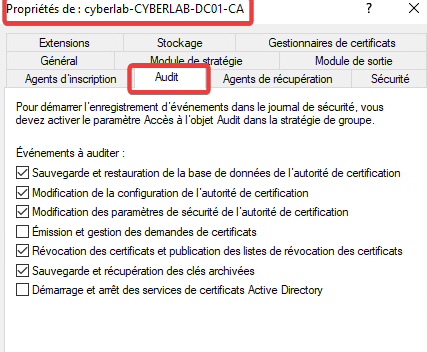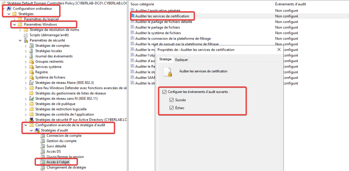 Les contrôleurs de domaine sont des serveurs cruciaux et il est essentiel de mettre en place une solide politique d'audit pour suivre les différentes modifications. Les stratégies d'audit par défaut ne sont pas suffisantes pour avoir une visibilité (meilleure) dans le suivi des comportements potentiellement malveillants.