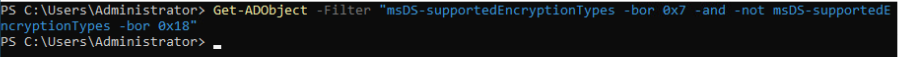Get-ADObject -Filter "msDS-supportedEncryptionTypes -bor 0x7 -and -not msDS-supportedEncryptionTypes -bor 0x18"