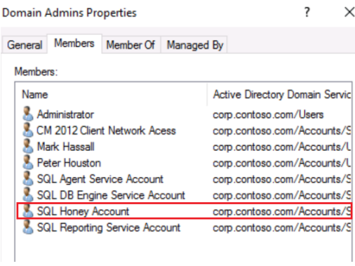 Une excellente façon de piéger un attaquant est de créer un faux compte de service contenant un SPN. Cet utilisateur permettra de détecter les attaques du types "Kerberoast". Voici un exemple de faux compte de service dans le groupe Domain Admins :