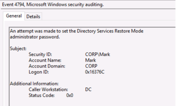 - Stocker les informations d'identification de DSRM de manière sécurisée et n'accéder à celles-ci qu'avec les personnes autorisées.