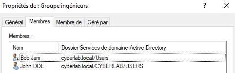 | Ouverture de session / fermeture de session | Auditer l’appartenance à un groupe | Succès |