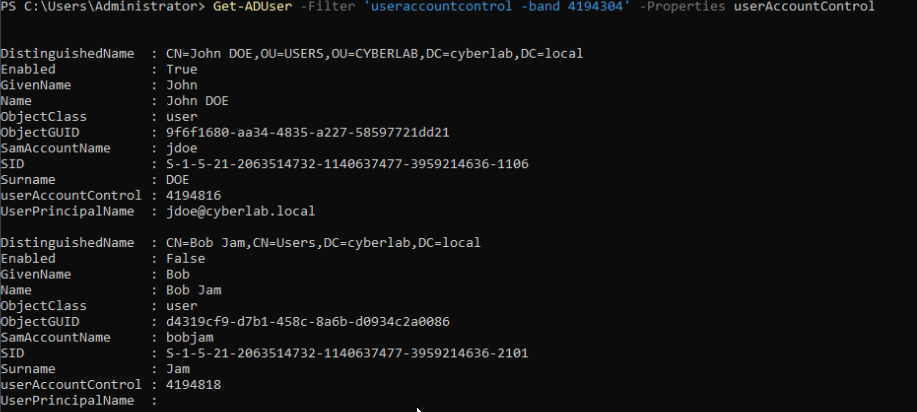 Identifier les utilisateurs ayant une valeur SIDHistory :
