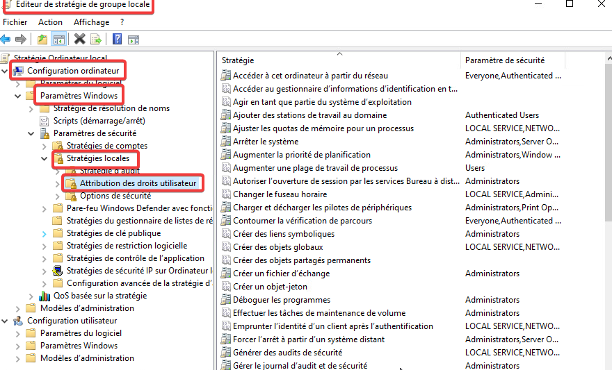 | Chemin de la stratégie | Paramètre de la stratégie | Configuration recommandée |