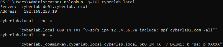 On retrouve donc la configuration SFP et DKIM dans la capture ci-dessus.