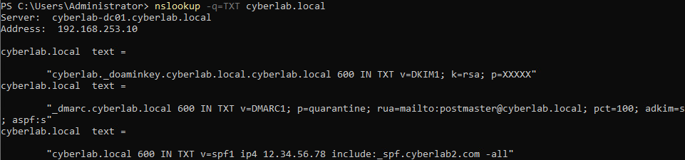 v=DMARC1 ; p=quarantine; rua=mailto:postmaster@cyberlab.local; pct=100; adkim=s; aspf=s